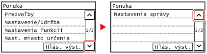 Keď sa zobrazuje rolovacia lišta, znamená to, že niektoré položky alebo informácie sa nezobrazujú na obrazovke. Tlačidlami [