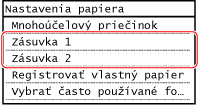 Vyberte zásuvku na papier, ktorej nastavenia chcete zmeniť.