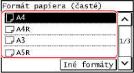 Stlačte položku [Iné formáty] a zo zobrazeného zoznamu vyberte veľkosť papiera.