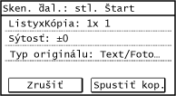 Opakujte tento postup, kým nedokončíte skenovanie všetkých originálov. Stlačením tlačidiel [Sýtosť] a [Typ originálu] zmeníte nastavenia pre každý originál. V závislosti od zadaných nastavení kopírovania [Typ originálu] nie je možné zmeniť.