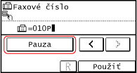 Pri odosielaní faxu na medzinárodné miesto určenia zadajte medzinárodné prístupové číslo, kód krajiny a faxové číslo miesta určenia, presne v tomto poradí. Na pridanie pauzy medzi číslami stlačte tlačidlo [Pauza].