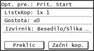 Postopek ponavljajte, dokler ne končate optično branje vseh izvirnikov. Če želite za vsak izvirnik spremeniti nastavitev, lahko pritisnete [Gostota] in [Vrsta izvirnika]. Glede na določene nastavitve kopiranja možnosti [Vrsta izvirnika] ni mogoče spremeniti.