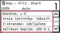 Na zaslonu za kopiranje pritisnite [Gostota].