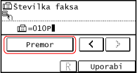Pri pošiljanju faksa mednarodnemu prejemniku, vnesite mednarodno dostopno številko, kodo države in številko faksa prejemnika v tem vrstnem redu. Med številkami pritisnite [Premor], da dodate premor.