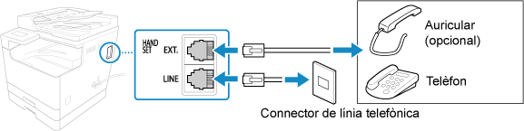 Connecteu el cable telefònic subministrat a la presa de línia telefònica (LÍNIA) de l'equip i al connector de línia telefònica de la paret.