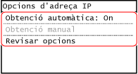 La pantalla [Opcions d'adreça IP] es mostra a la pantalla.