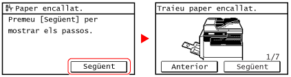 No retireu amb força el paper encallat de l'equip.Si ho feu, es poden danyar algunes peces de l'equip o provocar alguna lesió personal. Si no podeu treure el paper, poseu-vos en contacte amb el distribuïdor o el servei tècnic.