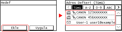 Hedefleri filtreleyip görüntülemek için Adres Defteri ekranının üst kısmındaki dizini seçin.