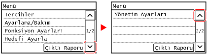 Kaydırma çubuğu görüntülendiğinde, ekranda görüntülenmeyen bazı öğeler veya bilgiler bulunduğu anlamına gelir. Ekranı basılan yönde kaydırmak için [