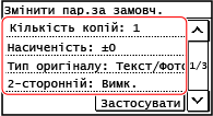 Можна змінити стандартні параметри для сканування, копіювання та інших функцій.