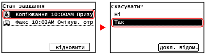Якщо відобразиться список завдань, виберіть завдання, яке необхідно скасувати, і натисніть [Так].