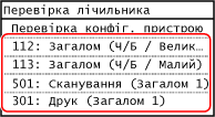 Натисніть [##Dummy], щоб перевірити конфігурацію параметрів на апараті та його серійний номер.