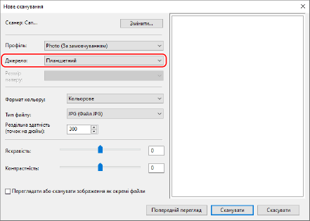 Для попереднього перегляду даних сканування натисніть [Попередній перегляд].