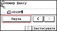 Під час надсилання факсу закордонному адресату введіть номер міжнародного доступу, код країни та номер факсу адресата в зазначеному порядку. Додайте паузу між номерами за допомогою кнопки [Пауза].