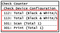 Operations Available on the Check Counter ScreenThe items displayed on the screen vary depending on your country or region. Press [Check Device Configuration] to check the serial number of the machine. |
