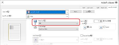 حدد مربع الاختيار [تحجيم لملاءمة حجم الورق]، وفي [حجم ورق الوجهة]، حدد حجم الورق المُراد الطباعة عليه.