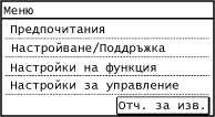 Промяна на дисплея на екранаМожете да промените дисплея на контролния панел, например като промените езика на дисплея и мерните единици, както и да показвате или скривате съобщенията. [Настройки за извеждане]