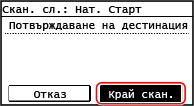 Натиснете [Край скан.], за да запаметите сканираните данни.