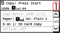 ניתן להשתמש בפונקציית העתקת תעודת זהות כדי להעתיק את הצד הקדמי והאחורי של רישיון נהיגה או תעודת זהות אחרת על אותו גיליון נייר בהגדלה של 100%. ניתן לבצע זאת במהירות ממסך [Home] או