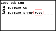 אם לא ניתן לבצע הדפסה או שמתרחשת שגיאה אחרת, קוד שגיאה (מספר תלת ספרתי המתחיל ב-"#") מוצג ביומן המשימות.