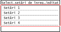 Apăsați pe [Înreg./Edit.] și selectați un element care nu are setările înregistrate.