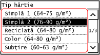 Setarea formatului și a tipului de hârtie pentru tava universală