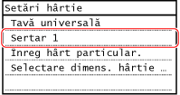 Setarea formatului și a tipului de hârtie pentru sertarul de hârtie