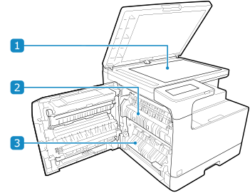 Când survine un blocaj de hârtie în zona unităţii de fixare, degajaţi blocajul de hârtie de aici.