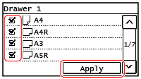 Опозовите избор у пољима за потврду за величине папира које желите да сакријете и притисните [Apply].
