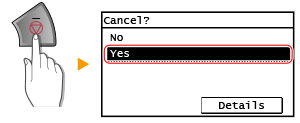 Ако се прикаже екран са листом задатака, изаберите задатак који желите да откажете и притисните [Yes].