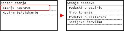 Ko tapnete ime elementa ali gumb, lahko element izberete. Prikaže se izbrani zaslon ali se izvede izbrana funkcija.