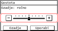 Tapnite gumba [+] in [-], da prilagodite vrednost. Ko je drsnik prikazan, kot je prikazano spodaj, ga lahko povlečete v levo ali desno, da prilagodite vrednost.