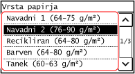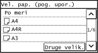 Če so pogosto uporabljene nestandardne velikosti papirja registrirane, je kot velikost papirja prikazana registrirana velikost. Registriranje nestandardne velikosti papirja (papir po meri)