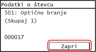 Preverite število natisnjenih strani in pritisnite [Zapri].