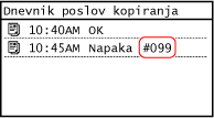 Če tiskanja ni mogoče izvesti ali če pride do druge napake, je v dnevniku opravil prikazana koda napake (trimestno število, ki se začne z »#«).