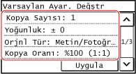 Kopyalama işlevini kullanırken ilgili ayarı kayıtlı Favori Ayarlar'dan amacınıza göre çağırın.