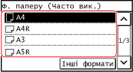 Натисніть [Інші формати] і виберіть формат паперу у відображеному списку.