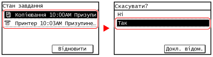 Якщо відобразиться список завдань, виберіть завдання, яке необхідно скасувати, і натисніть [Так].