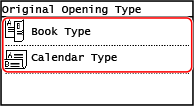 2 | Select the combination of the 2-Sided settings between an original and a copy, and then specify the orientation and the opening type of the copy. [1->2-Sided] [2->2-Sided]* [2->1-Sided]* |