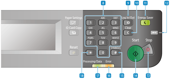 Press after entering the ID and PIN to log in when Department ID Management and the System Manager ID is enabled. After you finish using the machine, press this key again to log out.