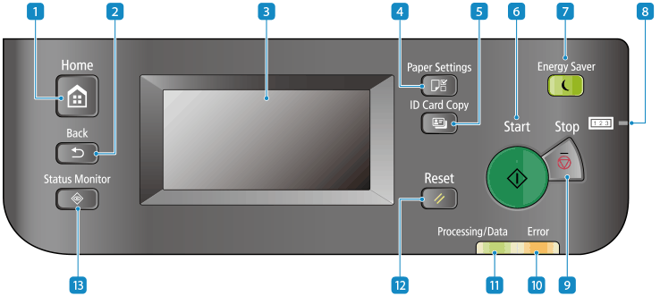 Blinks when an operation is being performed, such as during printing, and lights up when data is waiting to be processed.