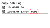 If printing cannot be performed, or scanned data cannot be sent or received, or another error occurs, an error code (three-digit number starting with "#") is displayed in the report or job log.