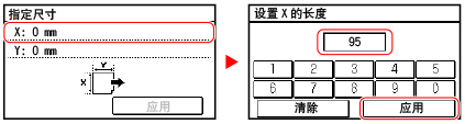 按 [X] 或 [Y] 输入长度,然后按 [应用]。