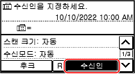 숫자 키로 팩스 번호를 입력하거나 [수신인]을 눌러 주소록에 등록된 대상을 선택합니다.