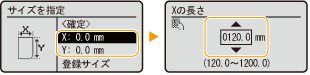 <X>辺と<Y>辺の長さを設定します。<X>または<Y>を選び、テンキーまたは