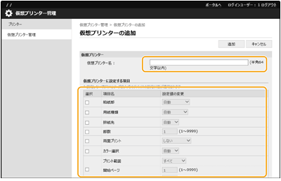 仮想プリンターは、あらかじめ仮想プリンターとして登録しておいた印刷設定をLPD印刷またはFTP印刷で使用することができる機能です。たとえば、用紙種類や部数、両面プリントなどの設定を登録しておくことで、ジョブごとに設定する手間を省けます。
