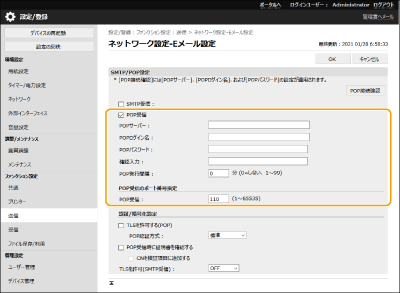 本機でEメールを受信し印刷するための設定について説明します。メール受信に関する設定はパソコンから、印刷に関する設定は本機の操作パネルから行います。設定にはAdministrator権限が必要です。