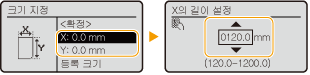 | <X> 또는 <Y>를 선택하고 숫자 키 또는  /  를 사용하여 양쪽의 길이를 지정합니다. |