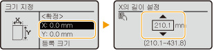 | <X> 또는 <Y>를 선택하고 숫자 키 또는  /  를 사용하여 양쪽의 길이를 지정합니다. |