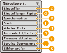 <Einstellungen Funktion>, <Präferenzen> und weitere Geräteeinstellungen starten von dieser Schaltfläche.